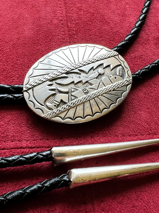 Rare Sterling Silver Vintage Navajo Bolo Tie - Signed by R. Wylie